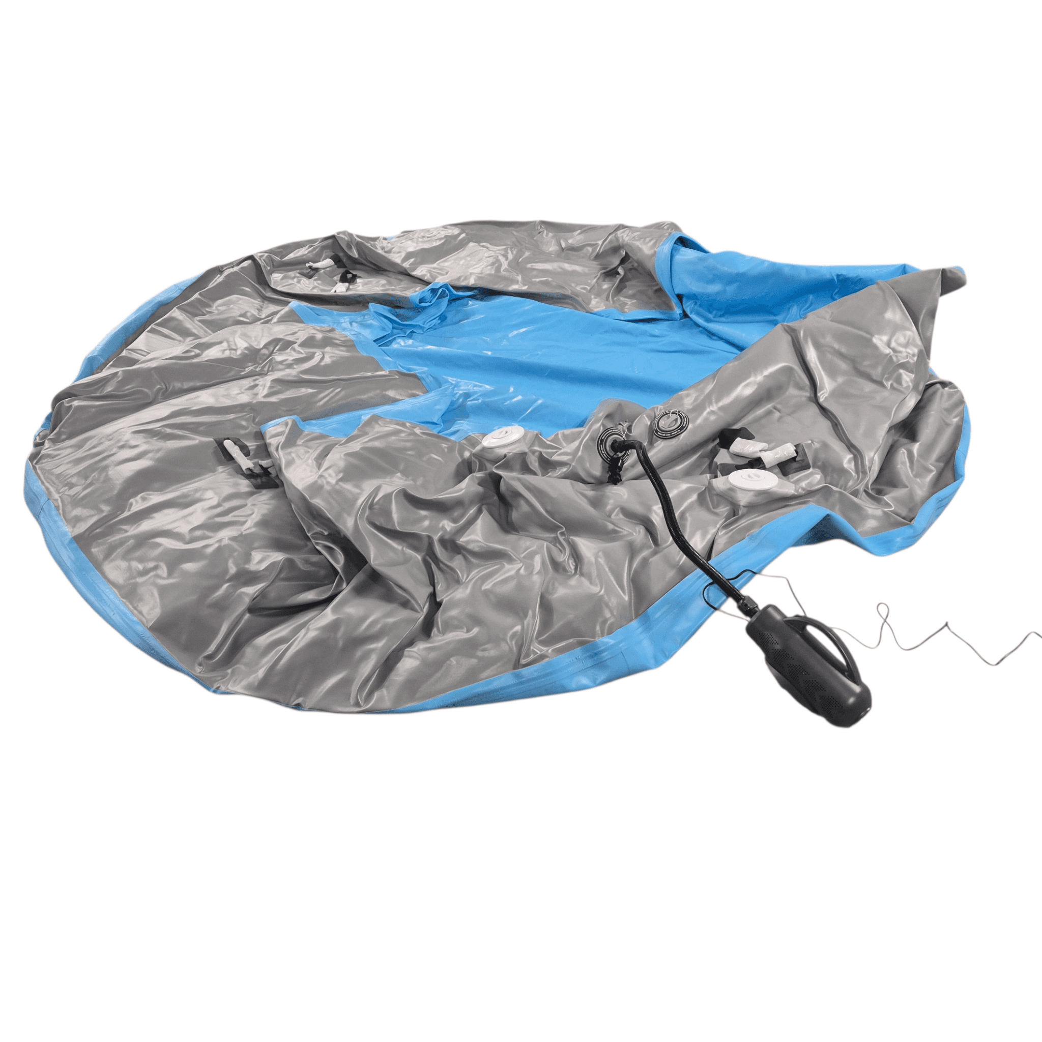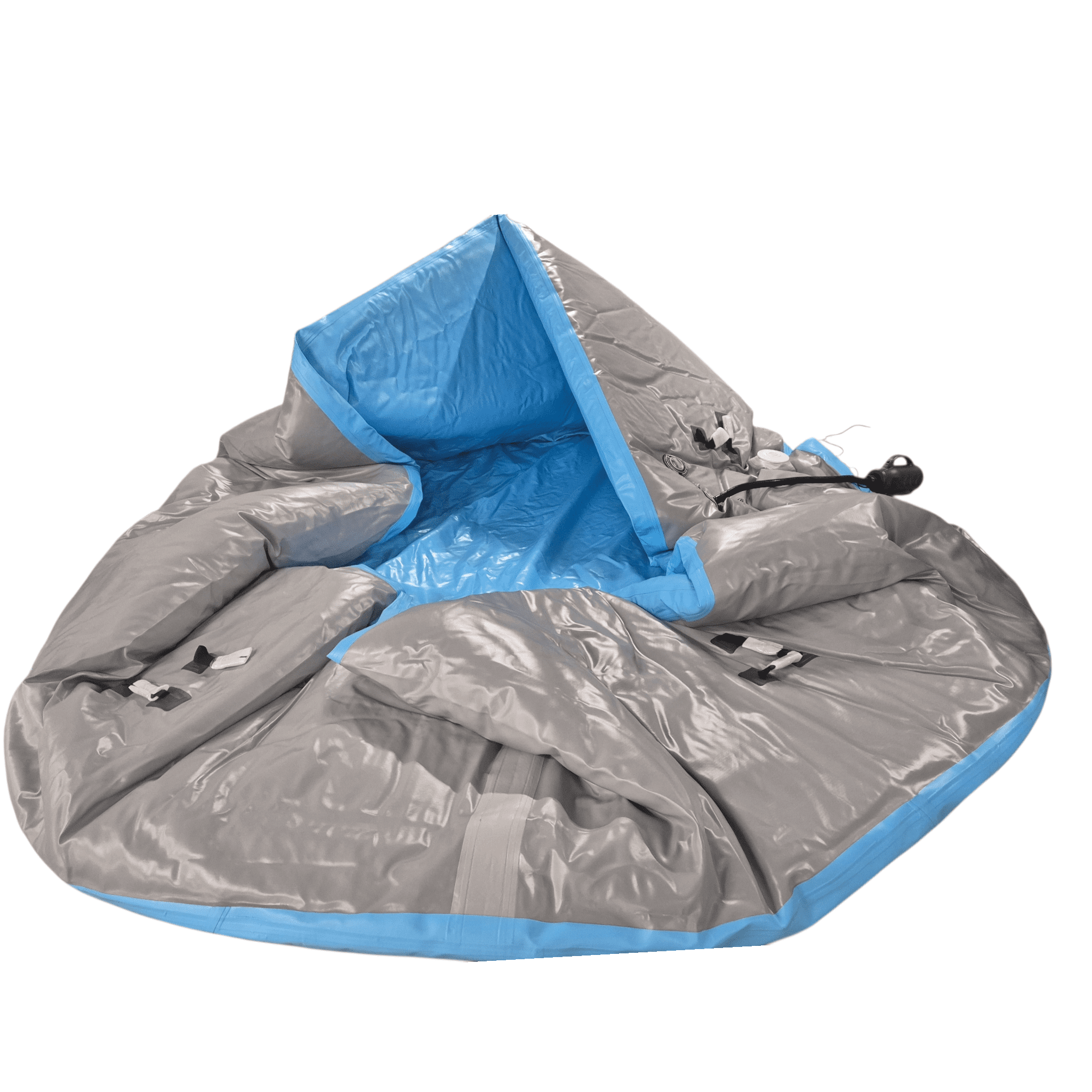 Am einfachsten ist eine lockere Abdeckung, welche das Wasser vor Schmutz schützt. Diese kann mit Klippverschlüssen einfach befestigt werden und hält auch bei windigem Wetter. Es gibt aber auch die etwas teuere Variante, ebenfalls mit Drop Stitch Qualität. Fragen Sie einfach nach.